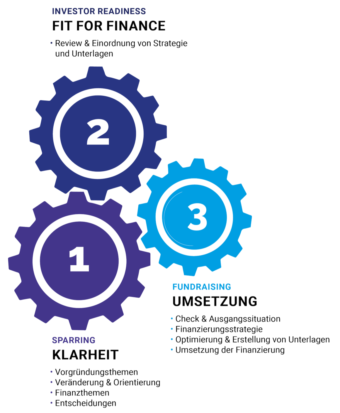 Wir machen dein Startup oder KMU fit für Investoren und begleiten dich bei der Kapitalbeschaffung. Pragmatisch und auf Augenhöhe.